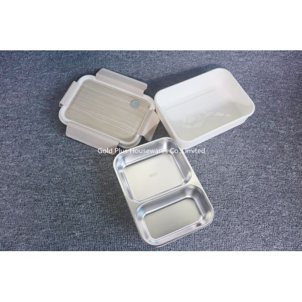 Single Layer Stainless Steel Food Container Rectangle With 2 Compartments Images |